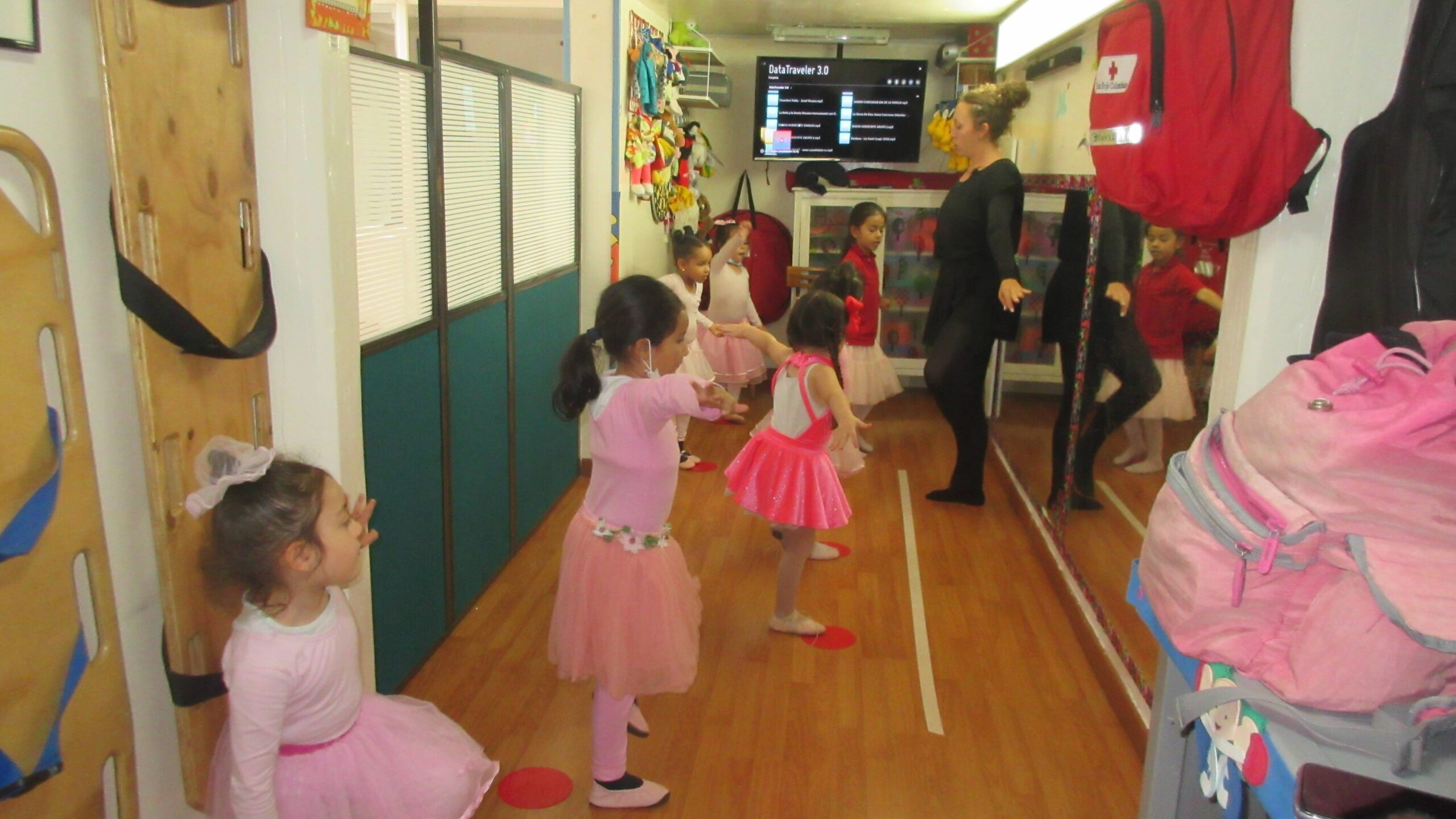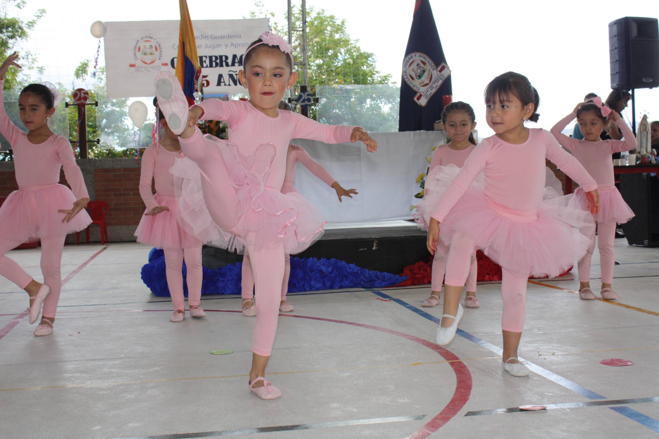 Los niños y niñas reciben la clase de expresión corporal y danza, se realizan dos presentaciones al año de danza tradicional colombiana e Internacional.