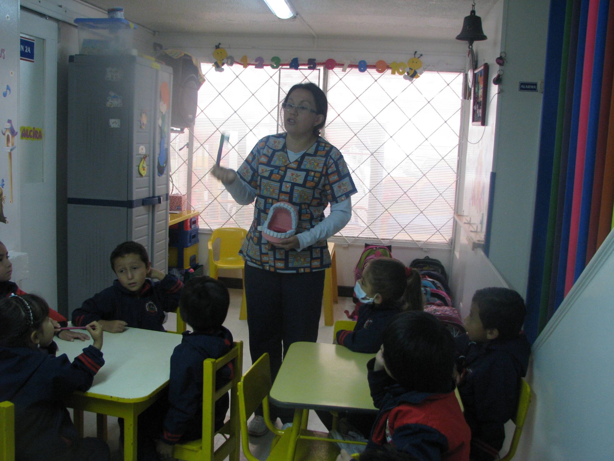 Realiza talleres mensuales con los niños, niñas y padres de familia, sobre hábitos saludables, verifica esquemas de vacunación, peso y talla.
